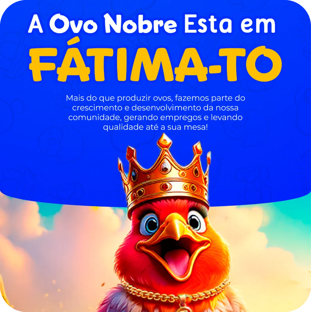 Começamos como uma empresa familiar e fundamos a Granja Ovo Nobre na cidade de Fátima-TO, com a missão de transformar cada ovo produzido em um símbolo de tradição e qualidade. Desde o primeiro dia, buscamos a excelência para garantir o melhor aos nossos consumidores, sempre com responsabilidade, transparência e respeito ao bem-estar animal. Nosso compromisso é levar até você ovos frescos e de alta qualidade todos os dias, priorizando a segurança alimentar e a satisfação dos nossos clientes!